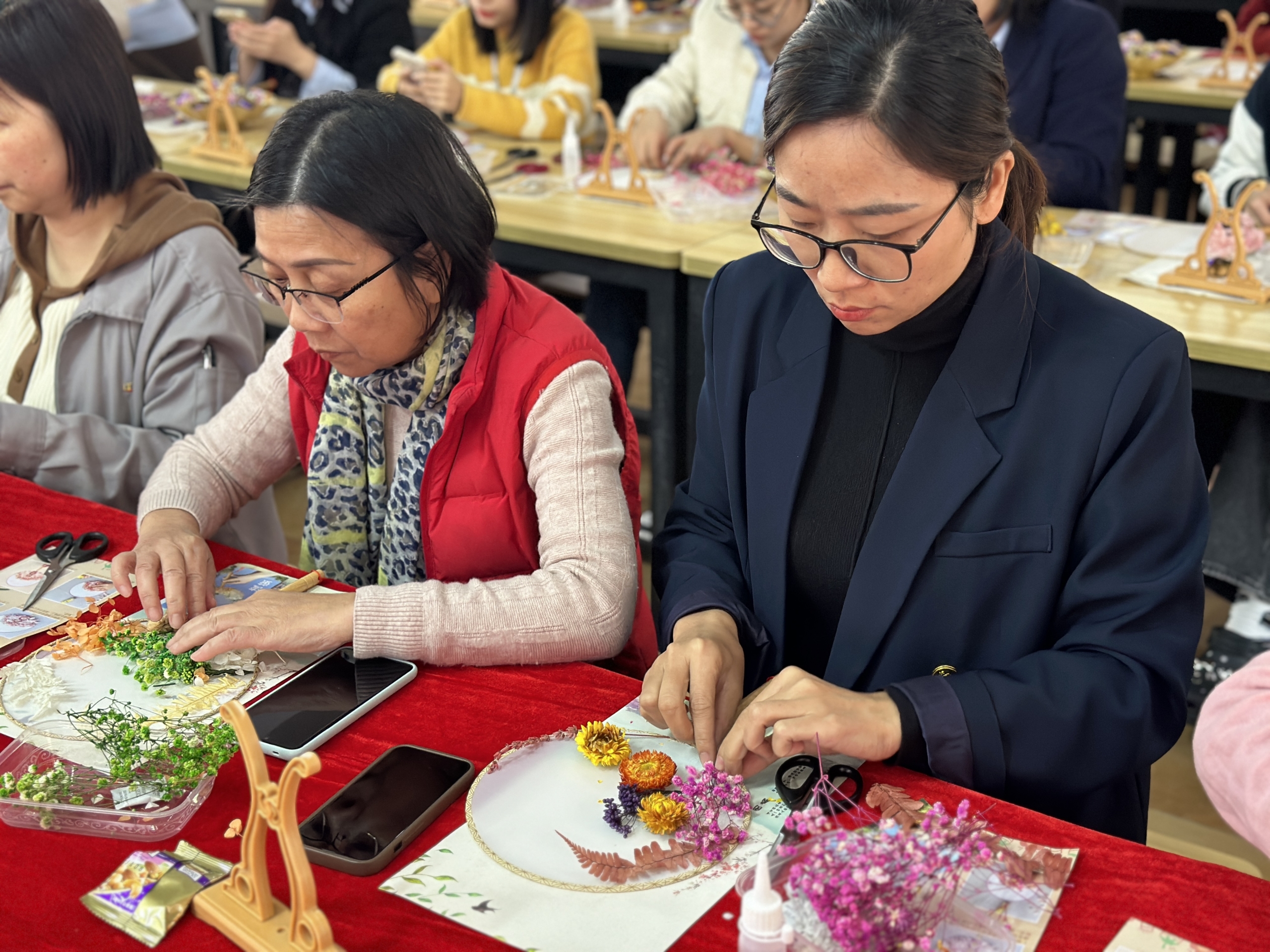 ? ? ? ? 團扇沙龍環(huán)節(jié),公司副董事長黎曉君女士作了開場致辭,向在場的小姐姐們送上節(jié)日祝福,并呼吁大家一定要有自己的目標和夢想。為自己的夢想制定出可執(zhí)行的目標計劃,想要做的改變、努力的方向。朝著目標一步一步前進,提升自己,活出自己精彩的人生。主持人首先向大家詳細講解了團扇的背景、制作方式和技巧。隨后大家認真的選材、設計造型,從架勢、布局到色彩搭配……幾簇干花、幾片葉子,一柄素凈,隨著時間的推移,通過大家的巧手和想像下,原本空空如也的團扇瞬間變的花團錦簇,一柄柄融入了中國傳統(tǒng)文化意境美、詩意美以及美好祝福的團扇便制作而成,每一扇都那么別具風情、獨一無二,美出了新意境。整個活動過程中大家互相交流與欣賞,現(xiàn)場氣氛十分的活躍。